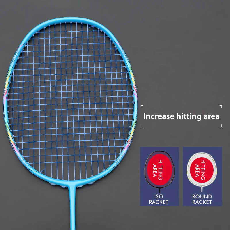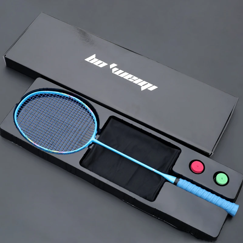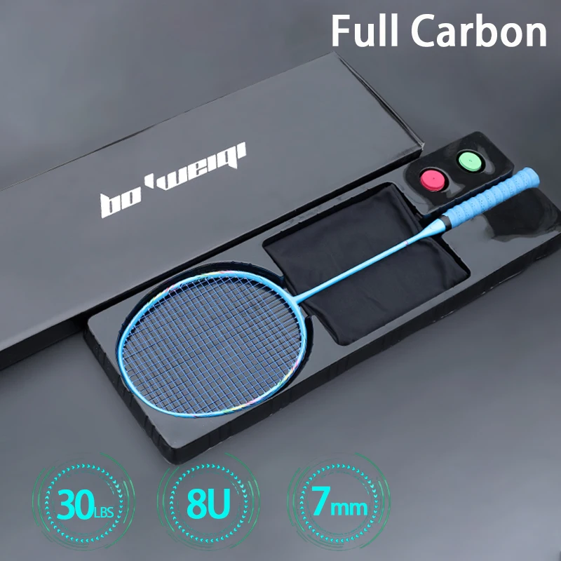 BEST Ultralight 8U Carbon Fiber Badminton Racket With Gift Box 24-30LBS Professional Rackets Offensive R